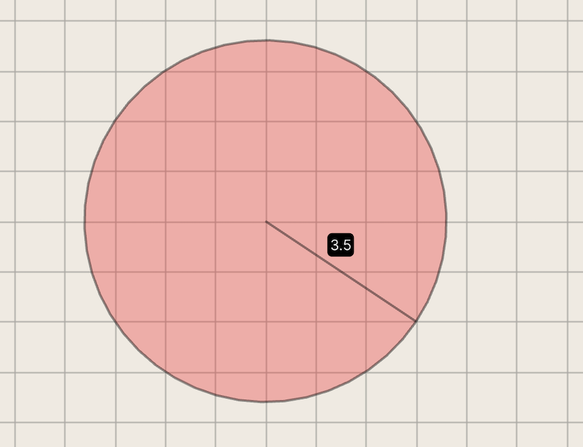 Clicchi e trascini per disegnare una figura. Durante il disegno, il raggio corrente viene visualizzato nelle caselle della griglia sotto forma di etichetta sullo schermo. Questo strumento può essere utilizzato per misurare le forme mentre le disegna.
