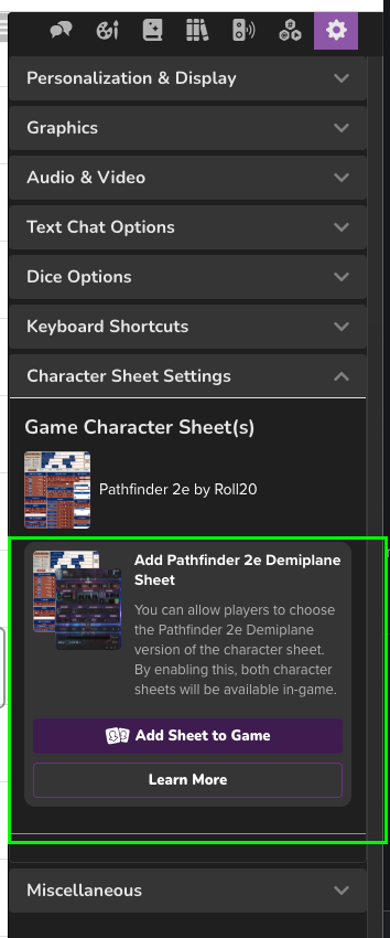 Questo significa anche che se ha una partita, ad esempio, a Pathfinder 2e, prima del rilascio della Beta, e ha aggiunto la possibilità di aggiungere una scheda personaggio Demiplano dopo - i futuri personaggi Roll20 che creerà nel gioco non si collegheranno automaticamente ai Personaggi Roll20 fino al rilascio della Gamma.