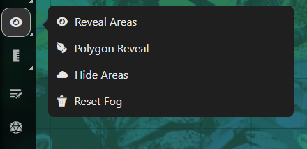 Se fai clic sull'icona dell'occhio nella Barra degli strumenti del tavolo, verrà visualizzato un sottomenu degli strumenti nebbia di guerra. Questi strumenti ti aiutano a rivelare o nascondere aree della pagina.