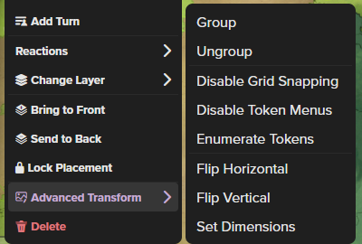 - 水平/垂直反転:これにより、アセットまたはトークンが中心軸を軸に反転し、同じアートの鏡像を作成します。