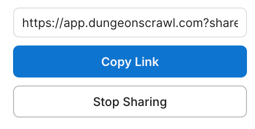 「エクスポート」パネルには、Dungeon Scrawl Proのサブスクライバー向けに「共有用リンクを作成」オプションが用意されています。 共有リンクを使用すると、他のユーザー(アカウントや有料プランは不要)があなたのマップのコピーを開くことができます。