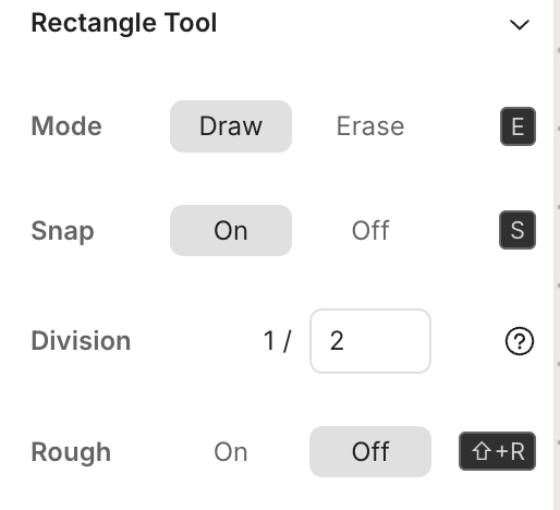“스냅 분할”은 도구가 스냅되는 한 그리드 셀의 분수를 의미합니다. 예를 들어, 1/2(기본값)의 스냅 분할은 반 그리드 셀로 스냅합니다. 1/3은 세분의 일로 스냅합니다. 변경하는 바로 가기는 shift+s를 누른 다음 숫자를 입력합니다.