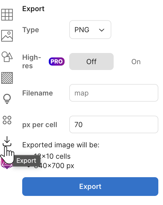 - [Pro 사용자] 고해상도 내보내기 옵션을 사용합니다 - 이렇게 하면 Dungeon Scrawl 서버를 사용하여 브라우저 제한을 초과합니다.