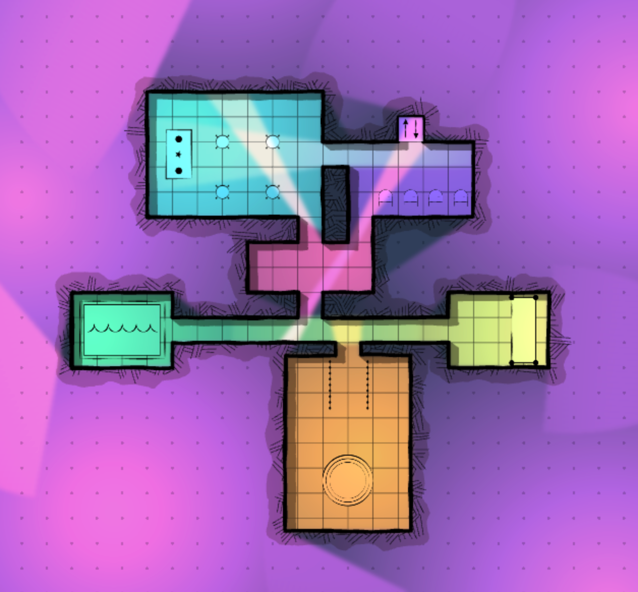 Coloque fontes de luz no seu mapa e personalize a sua cor e intensidade para orientar a atenção do jogador, marcar a linha de visão e criar ambiente. Controle a iluminação de fundo do ambiente e ative ou desative o bloqueio de luz por camada.
