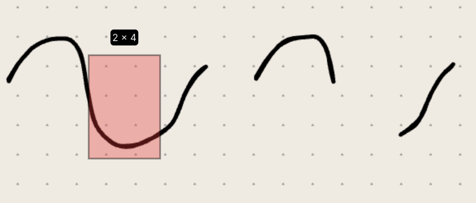 Define a resolução de alinhamento como uma fração de uma célula da grelha. Funciona da mesma forma que na ferramenta Retângulo. Para definir a divisão com um atalho de teclado, prima Shift+S seguido de um número que represente o denominador. Por exemplo, Shift+S seguido de 2 define o alinhamento a 1/2 célula, e Shift+S seguido de 3 define o alinhamento a 1/3 de célula.